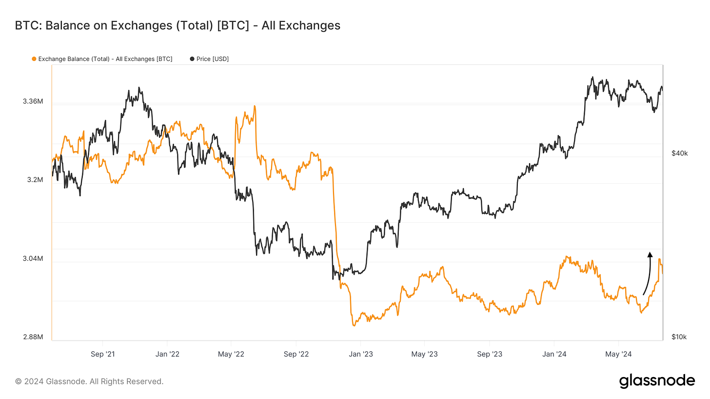 Aumento de bitcoins enviados a los intercambios, lo que podría indicar ventas futuras.