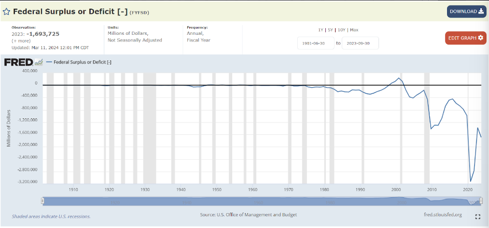 Sin embargo, no todo es tan sencillo. Actualmente, Estados Unidos enfrenta el mayor déficit presupuestario de su historia. El déficit anualizado del presupuesto de EE. UU. asciende a aproximadamente $1.6 billones.