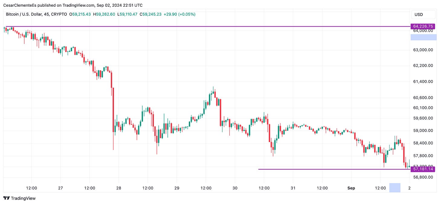 Bitcoin cayó un 10,5%, con el precio fluctuando entre $57.181 y $64.226