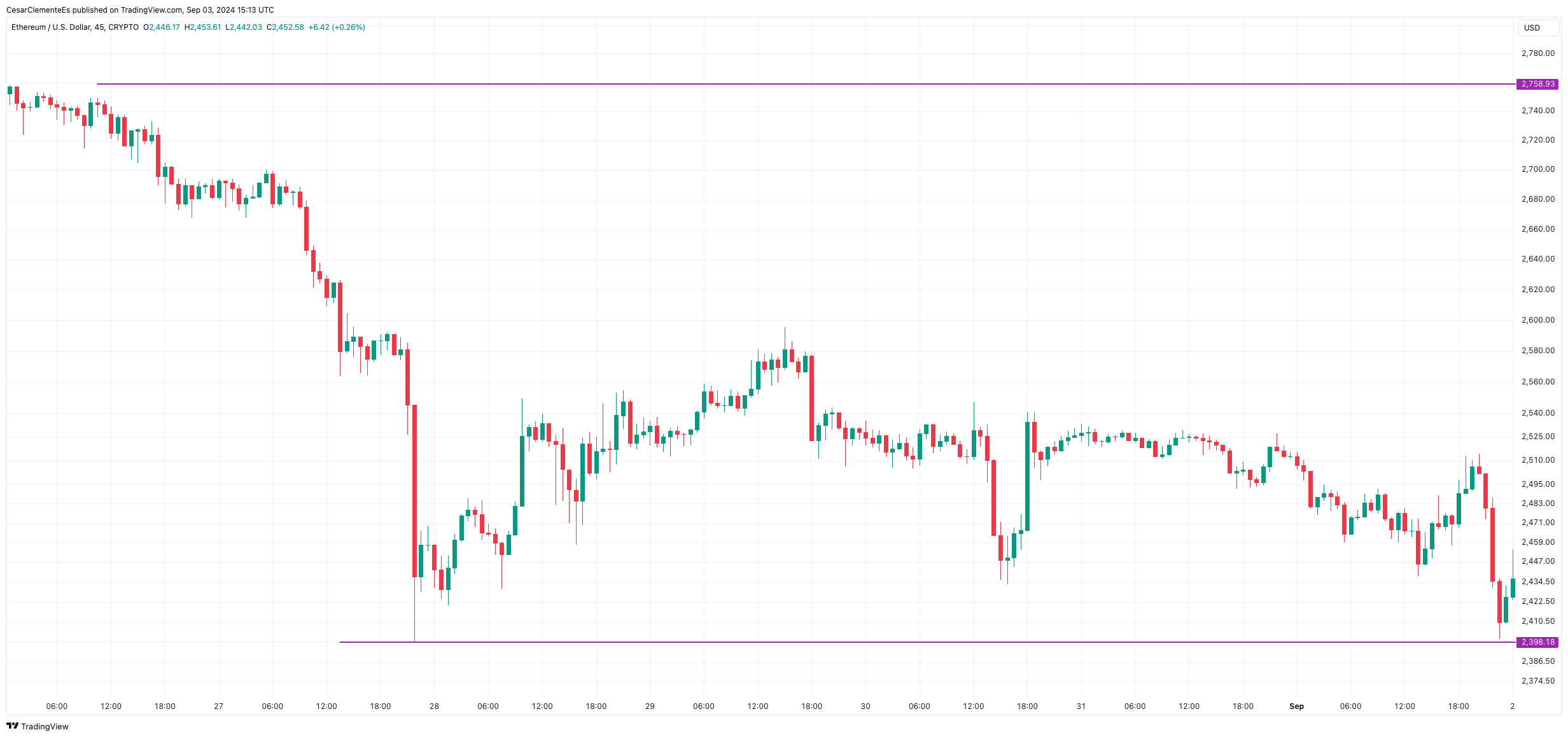 Ethereum también sufrió una caída del 11,6%, moviéndose entre $2.758 y $2.398.