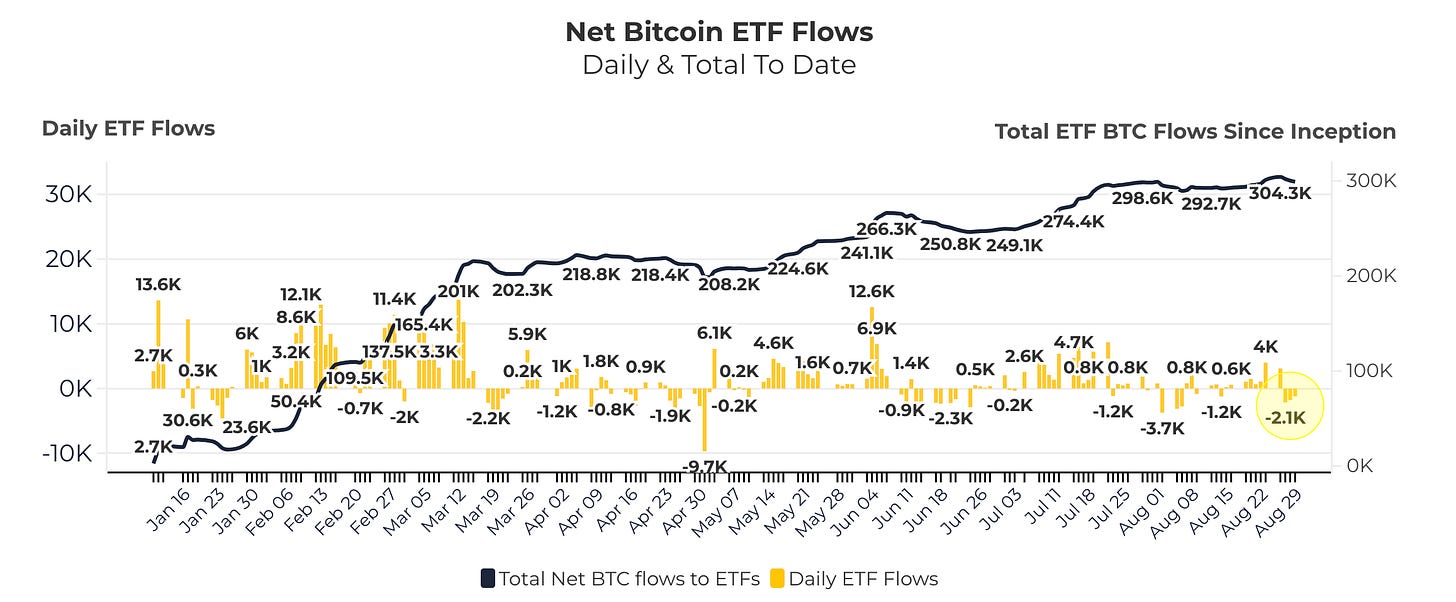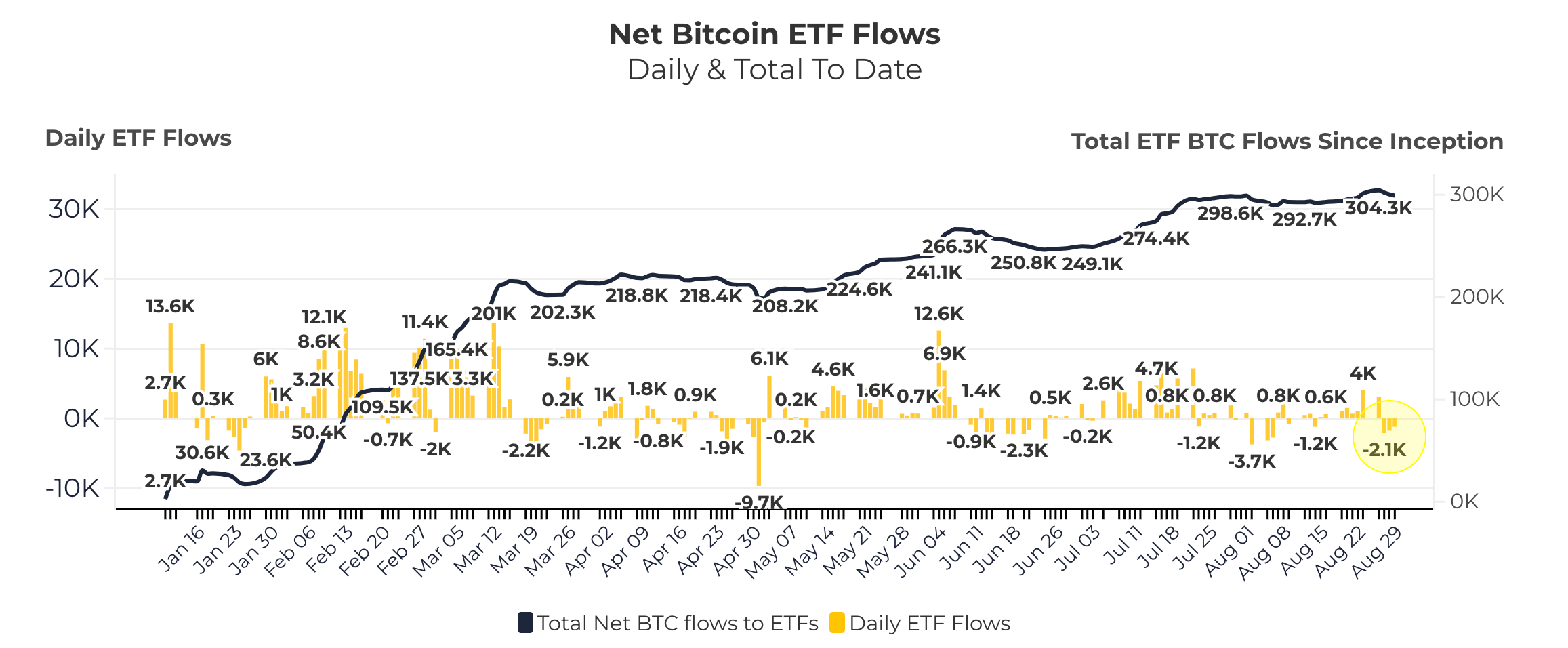 En cuanto a los ETFs de Bitcoin, hemos notado una actividad limitada en las últimas semanas, con algunas salidas de capital. Este comportamiento sugiere una posible pausa en el entusiasmo por parte de los inversores institucionales.