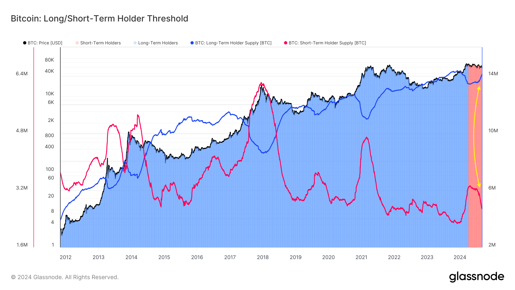 Los inversores a largo plazo continúan acumulando, lo que ha generado una brecha con los inversores a corto plazo. El nivel de $63.000 se presenta como una resistencia clave.