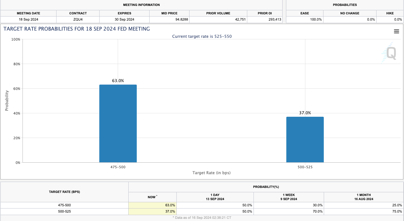El último dato de inflación, el más bajo en tres años y medio, ha llevado a los Fed Funds Futures a proyectar una probabilidad de un recorte de 50 puntos básicos en la próxima reunión de la Fed de 63%. Sin embargo, desde nuestra perspectiva, creemos que un recorte tan agresivo no está en los planes de la Fed para la próxima semana. Un recorte de esta magnitud implicaría que Powell percibe un riesgo inminente en la economía, lo que iría en contra de su objetivo de lograr un "aterrizaje suave".