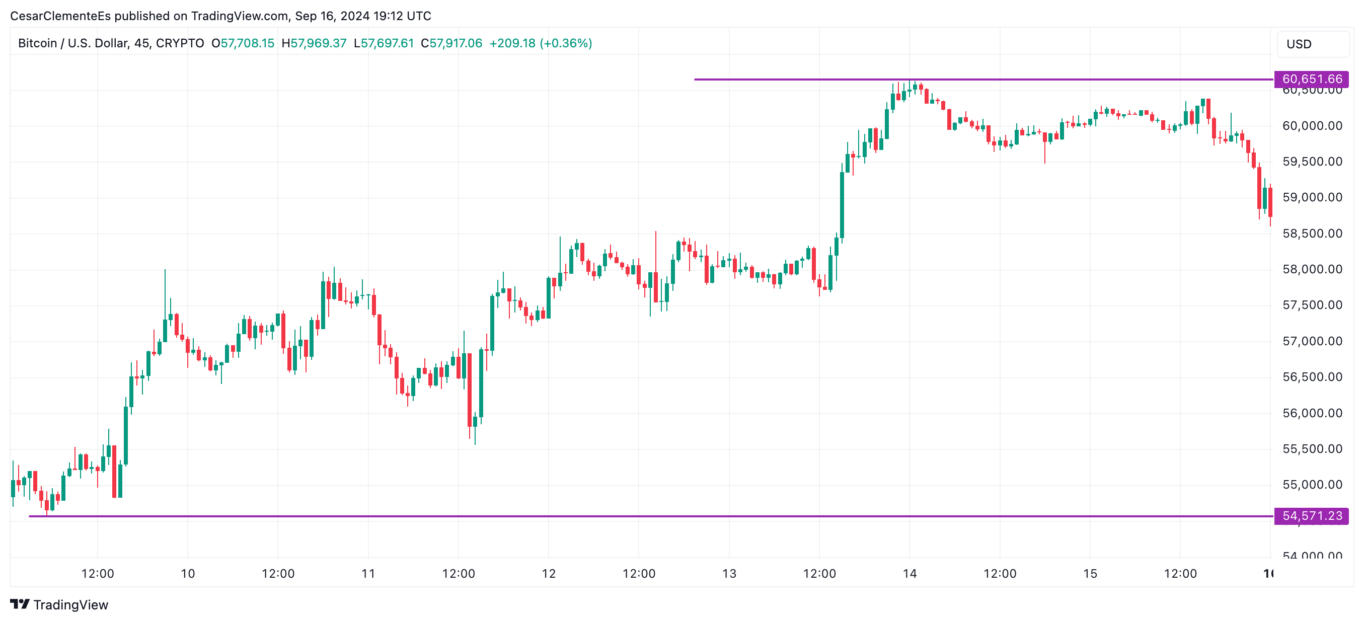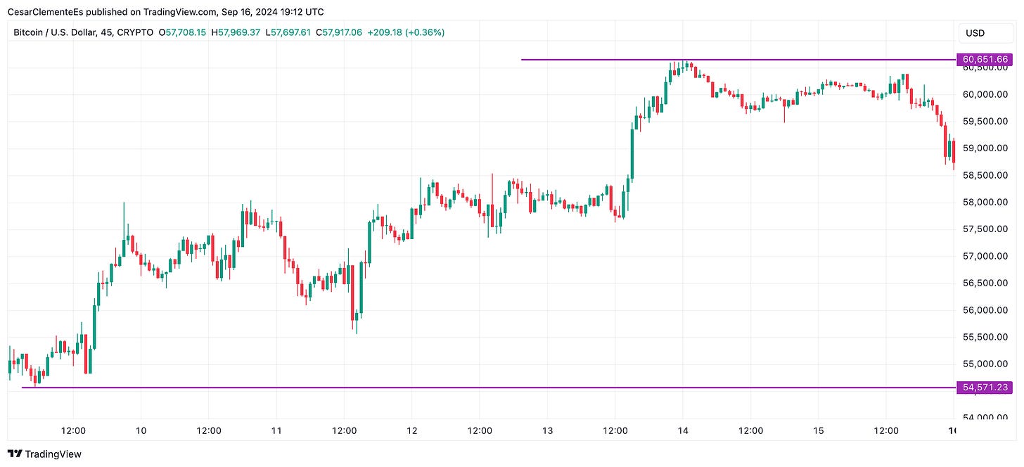 La semana pasada, Bitcoin (BTC) subió un 7,1%, con el precio moviéndose entre los $54.600 y los $60.700.