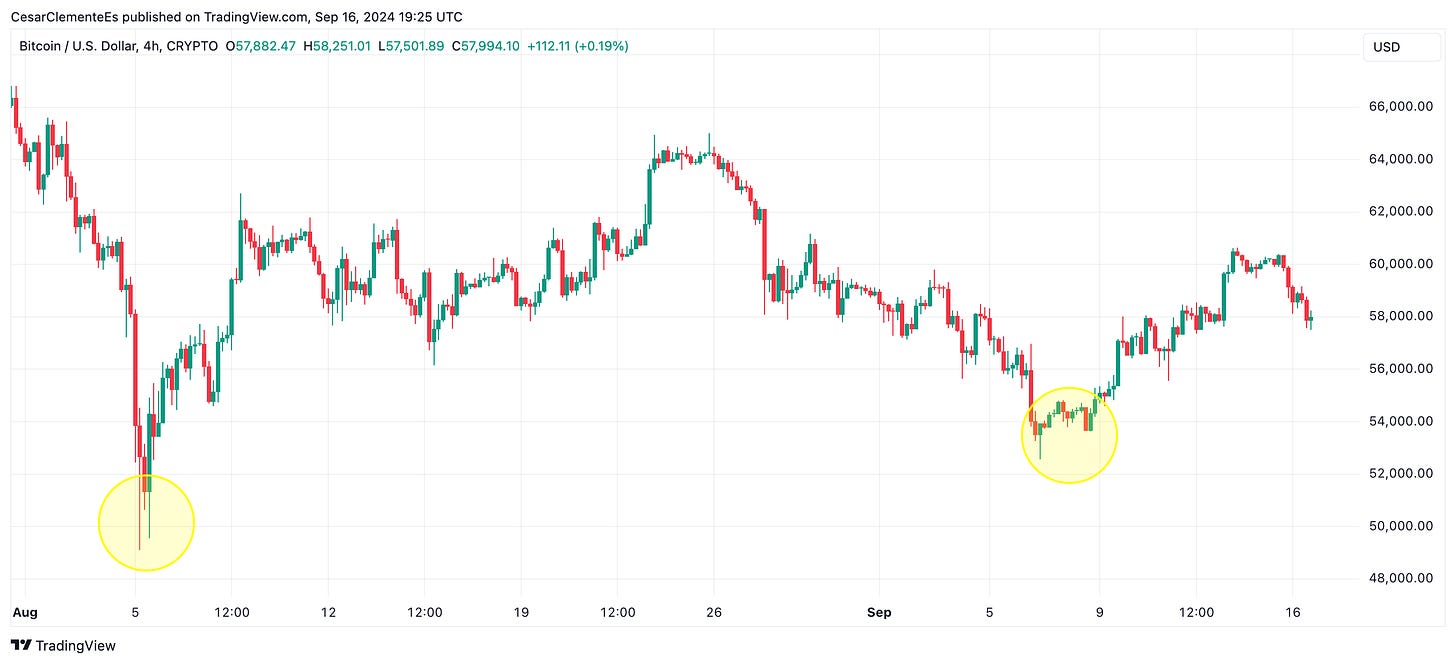 A pesar del sentimiento bajista y el movimiento lateral de los últimos meses, tras caer por debajo de los $50.000 en agosto, la reciente corrección de Bitcoin se estabilizó en $52.000, mostrando una demanda importante en la parte baja del rango.