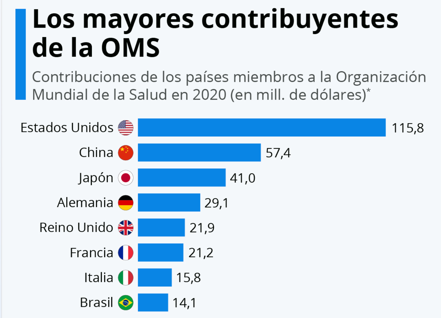 La salida de la OMS implica que esta perderá aproximadamente 1,000 millones de dólares en financiamiento, lo que representa un fuerte golpe para su operatividad.